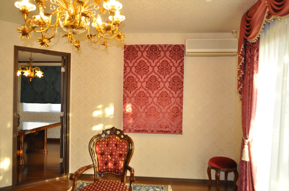 ■施工ポイント:大阪府枚方市でリフォームをされたお客様。カーテンはお家の仕上げと言わんばかりにこだわりをもった方です。お部屋の中でカーテンの占める割合というのは思った以上に大きいものなので、どの様なカーテンを選ぶかによって、お部屋の仕上がりは大きく変わってきます…。ベルベット生地は高級感満点のしっかりとした生地です。深紅の様な深い赤色のダマスク柄は異国情緒を漂わせてくれます。ヨーロピアンな家具との相性もばっちりです。まるで海外の応接間の様な仕上がりですね。日本離れしたクラシックで重厚感あふれる仕上がりにお客様にも大変ご満足頂きました。