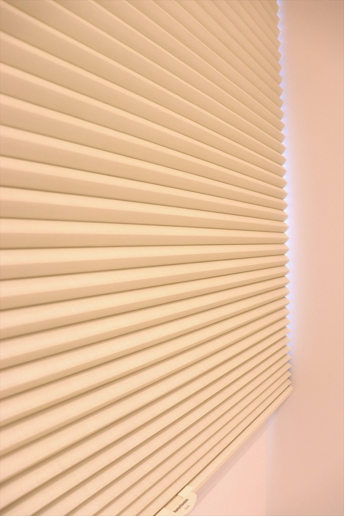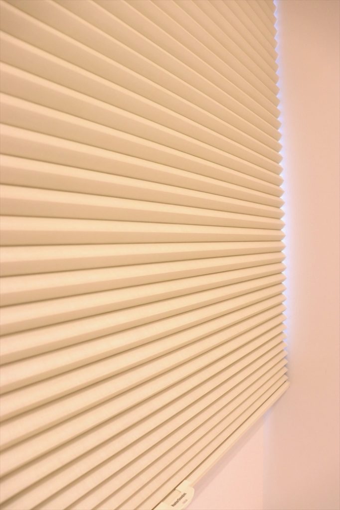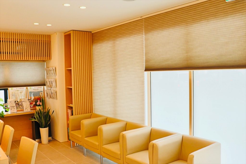 ■施工ポイント:電動式のDuetteシェードをクリニックの待合室に施工させて頂きました。離れた場所からでもリモコンでシェードの開閉が可能なのでとても便利です。ハニカム構造なので断熱性にも優れており、強い日差しを和らげてくれます。また狭い隙間にでも家具などと干渉せずに設置できるので空間を広々と使えます。カラーバリエーションも豊富なので、イメージするインテリア作りに最適なアイテムです。